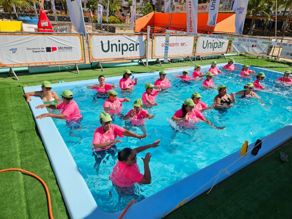 Maria das Graças Dutra Portela, 62 anos, aproveitou a aula de hidroginástica. “É a primeira vez que entro em uma piscina, foi uma sensação maravilhosa. Consegui fazer muitas coisas, os movimentos da ginástica na água. Para algumas pessoas isso pode ser uma bobagem, mas no meu caso, uma novidade. Foi algo especial, poder ter essa experiência, ao lado das minhas amigas e na praia”.